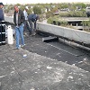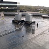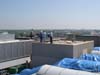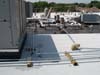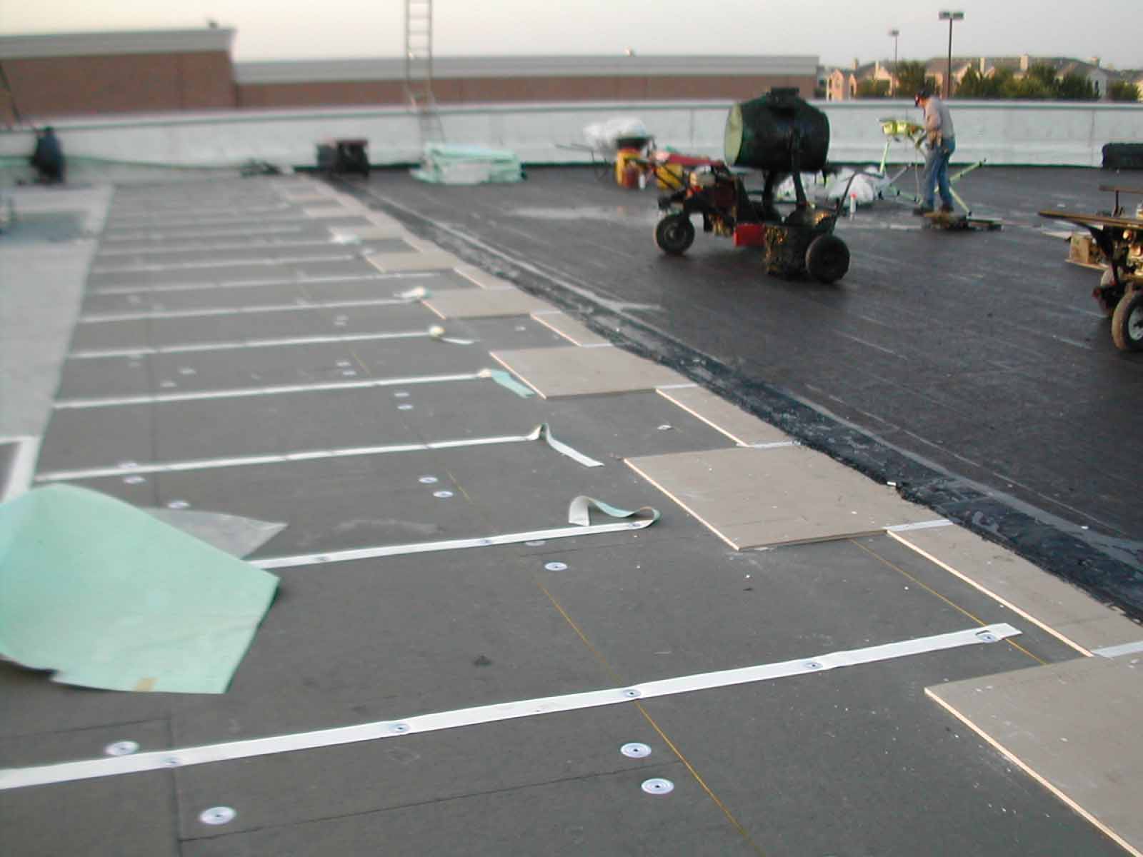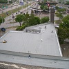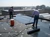 Completely removed old ballasted single-ply roof system down to the concrete deck. Replaced it with a new, fully adhered insulated Soprema torch