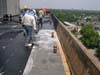 This roof of this building was hail damaged and needed to be replaced. The roof system was completely removed down to the concrete deck on this high-rise