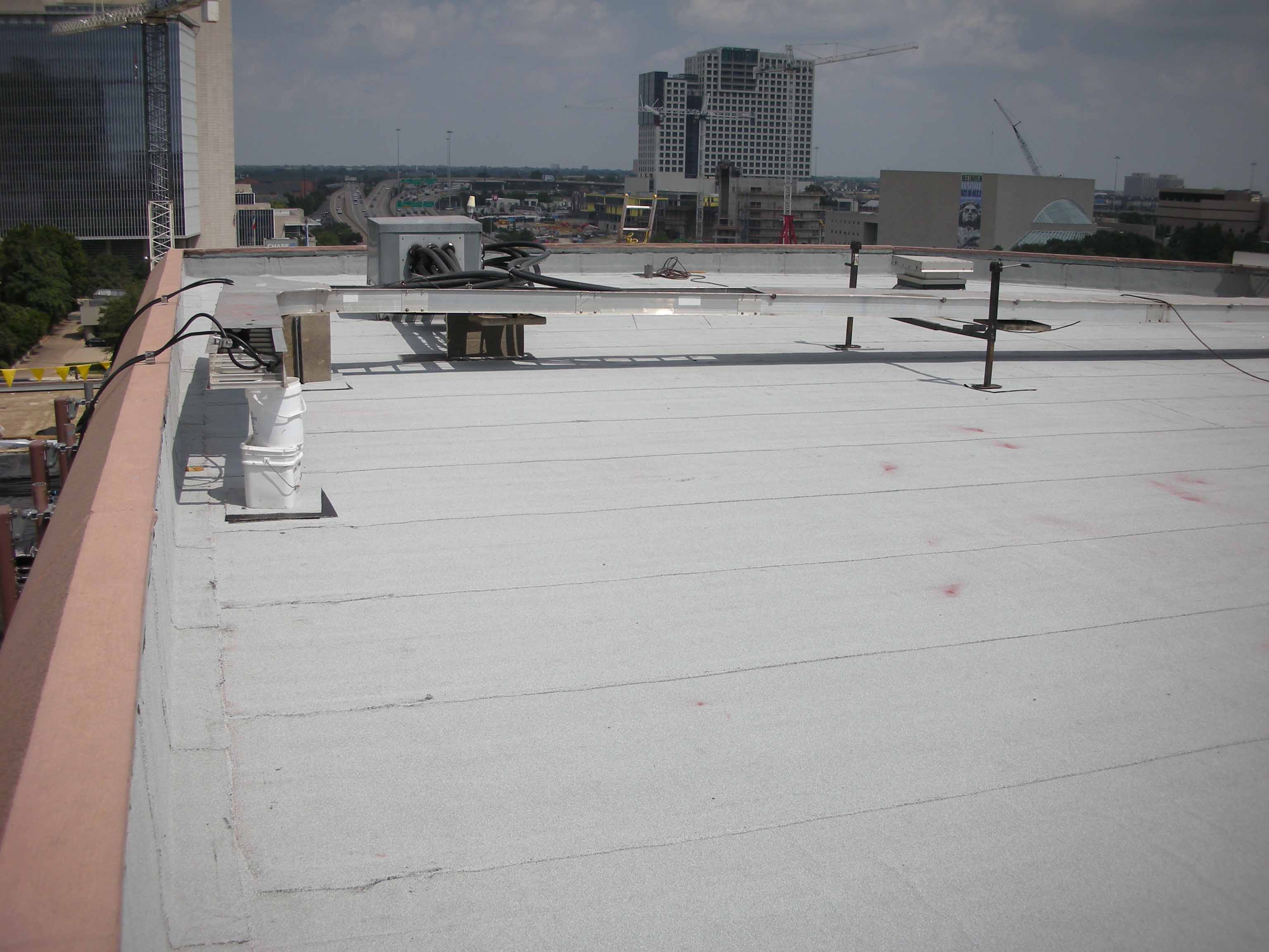 These are photos of a bank in Dallas that we consulted on. This was a complete removal of the existing roof on a mid-rise bank building in Dallas, TX.